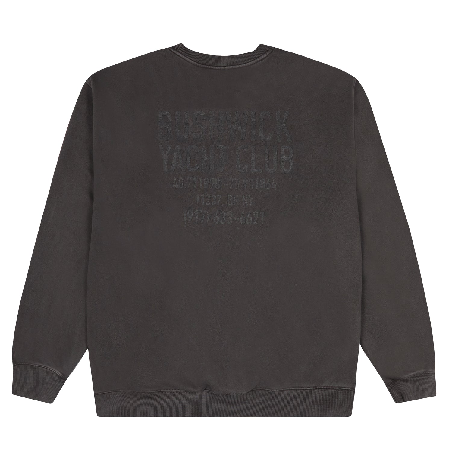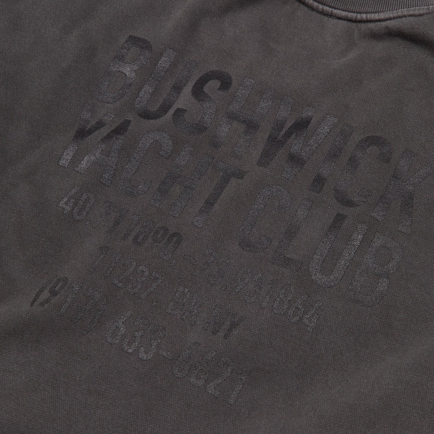 - Black print on vintage black crew.